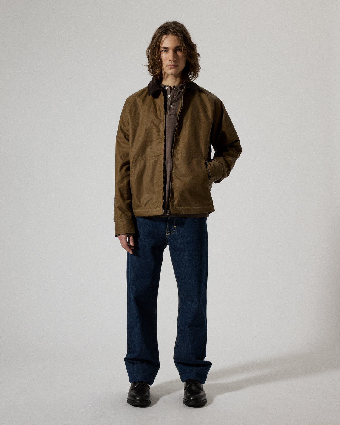 Cut at a shorter length, Carter Wax is manufactured in the city of Birminghamn, UK, crafted from a durable high quality organic cotton and treated with a water resistant wax in Dundee, Scotland. The jacket is featured with a split kangaroo front pocket and an inside pocket. The collar and inside of the cuff are lined with a rich corduroy quality. For a long lasting garment, periodically rewax the shell fabric.