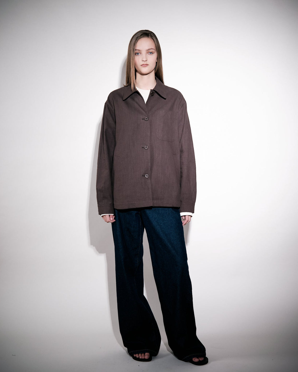 Overshirt tailored in a loose cut for a contemporary silhouette. This overshirt is crafted from a linen-cotton blend which has been washed for a soft feel to the touch. Featuring sewn buttons at front closure and cuff with slanted welt pockets at the sides.