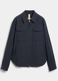 Overshirt tailored in a loose cut for a contemporary silhouette. This overshirt is crafted from a linen/cotton blend which has been washed for a soft feel to the touch. Featuring a two-way zipper at front closure, sewn buttons at cuff and diagonal welt pockets at the sides.